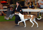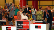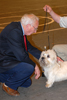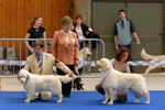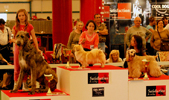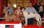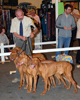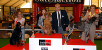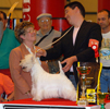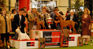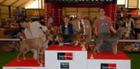 Les meilleurs de l'exposition sur le podium : petit lévrier italien, vizsla et westie.
