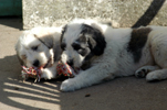 Dix chiots Bergers de Russie Méridionale sont nés à la fin juillet 2003 dans l'élevage tourangeau Askania Skazka (Sylvia Pons). Passer quelques jours avec cette petite meute de deux mois a été un véritable plaisir et une occasion exceptionnelle de photographie. (20 et 21 septembre 2003).