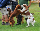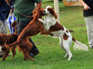 | La fête annuelle de la Sange, à Sully sur Loire, est l'occasion de la présentation à un très nombreux public des chiens de chasse, notamment les chiens de chasse d'arrêt. L'explication est donnée par Roger Roulleau, responsable des chiens de chasse de la Sologne, section de la Société Canine Ragionale du Centre. Des démonstrations de conduite de troupeau sont égelement proposées. |
