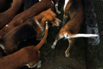 Quelques images de chiens courants, chiens de vénerie lors de l'exposition de Championnat de France, le 19 juin 2004 au Parc de la Beaujoire, à Nantes